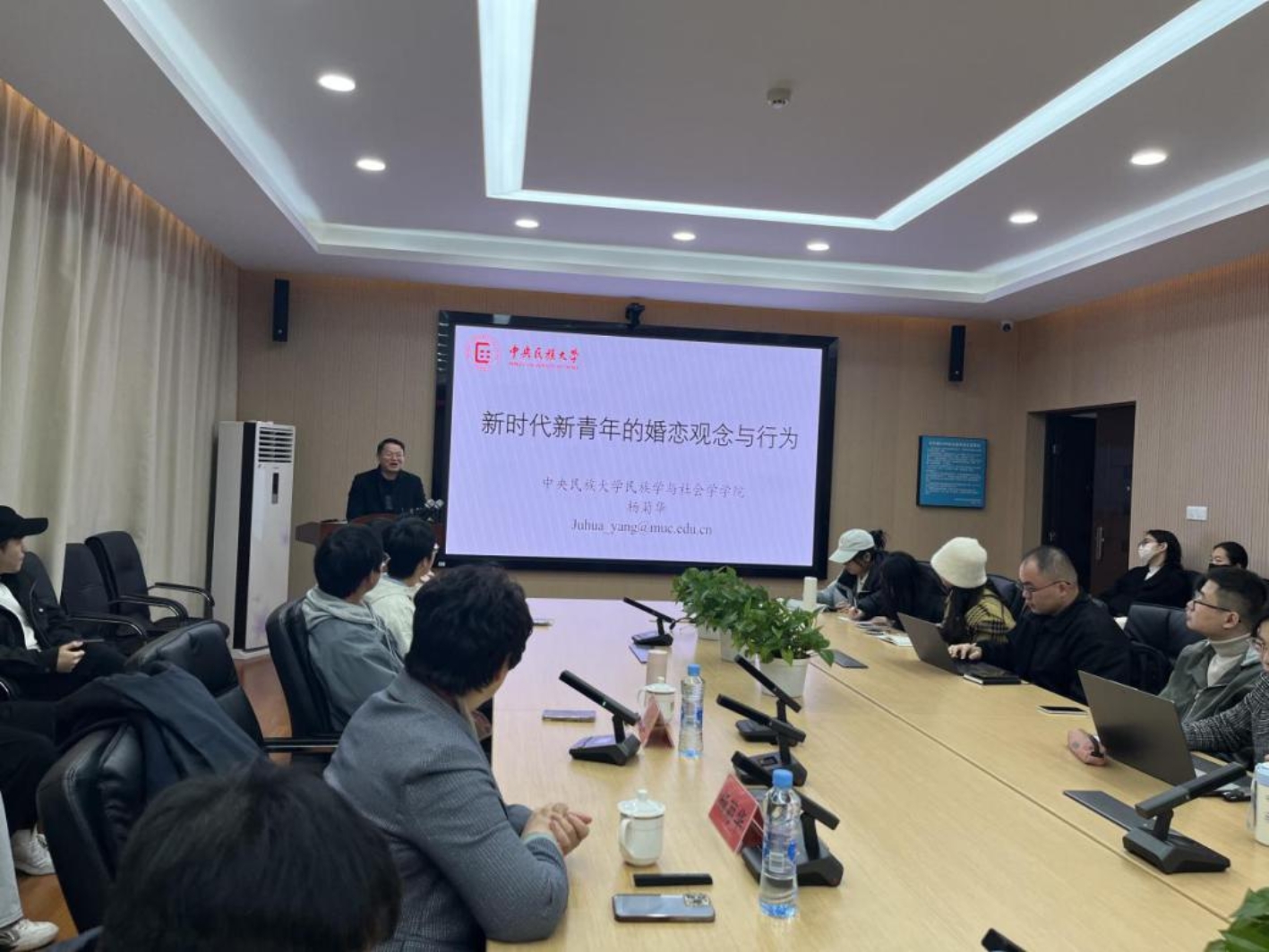 2025年12月26日下午,中央民族大学知行讲习教授、国家社会科学基金重大项目首席专家杨菊华教授应邀莅临我校公共政策与管理学院,为师生开展主题为“新时代新青年的婚恋观念与行为”的学术讲座。讲座由学院学科长徐兵教授主持。学院教师、研究生、本科生代表到场聆听。