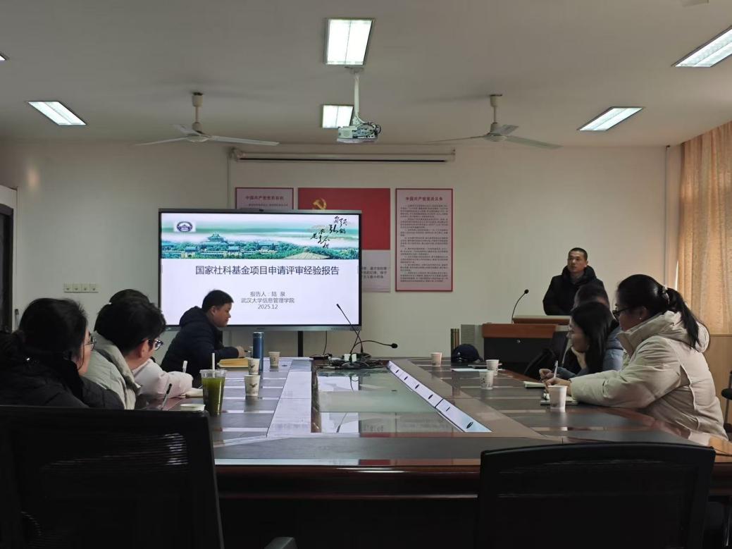 2025年12月26日15:00,由院主办的“国家社科基金项目申请评审经验报告”讲座于机电楼E515顺利举行。本次讲座特邀武汉大学陆泉教授担任主讲,讲座围绕国家社科基金项目申请的核心要点和评审经验展开专业指导与深度交流,我信管系三十余名师生代表参加本次学术活动。