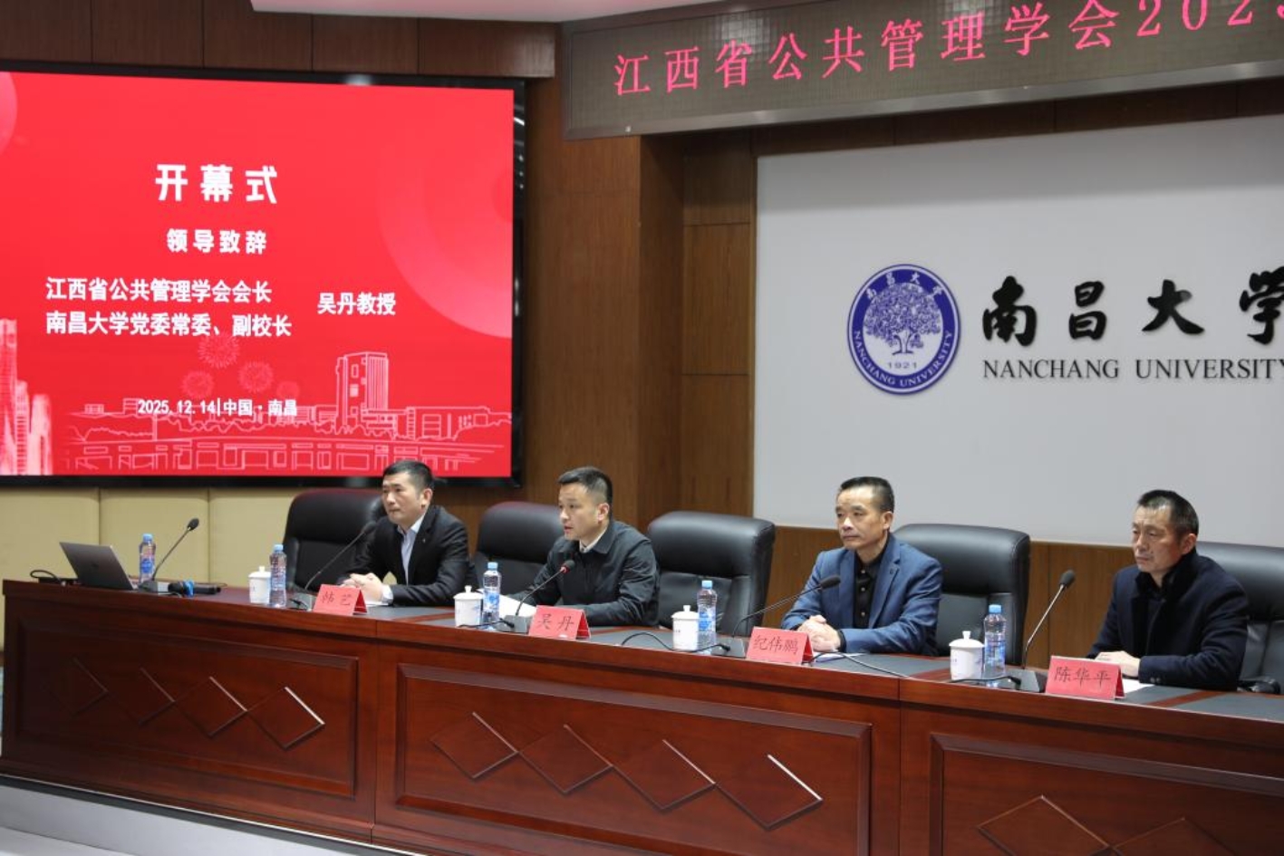 2025年12月14号,江西省公共管理学会2025年年会暨“学术论文高质量写作与发表”研讨会在南昌大学隆重召开。江西省公共管理学会会长,南昌大学党委常委、副校长吴丹教授出席会议并致辞,学会副会长兼秘书长韩艺教授主持会议。