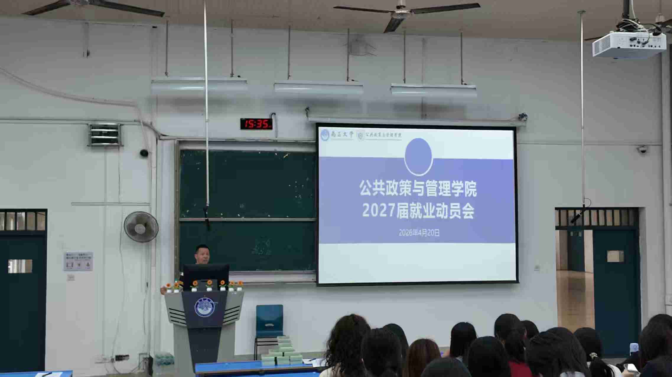 为帮助2027届学生提前明晰就业形势、掌握求职技能、科学规划职业生涯,4月20日下午公共政策与管理学院2027届就业动员会在外经楼103顺利召开,学院2027届学生参会学习。