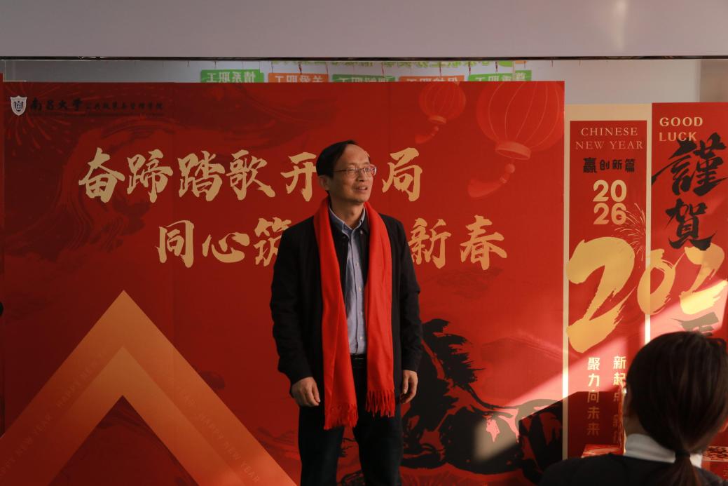 学院领导班子其他成员也相继上台,向全体教职工送上新春祝福,并勉励大家在新的一年里,将学院的关怀转化为奋发进取的动力,进一步凝聚共识、增强合力,以更加饱满的热情和务实的作风,共同推动学院各项事业再上新台阶,谱写高质量发展新篇章。