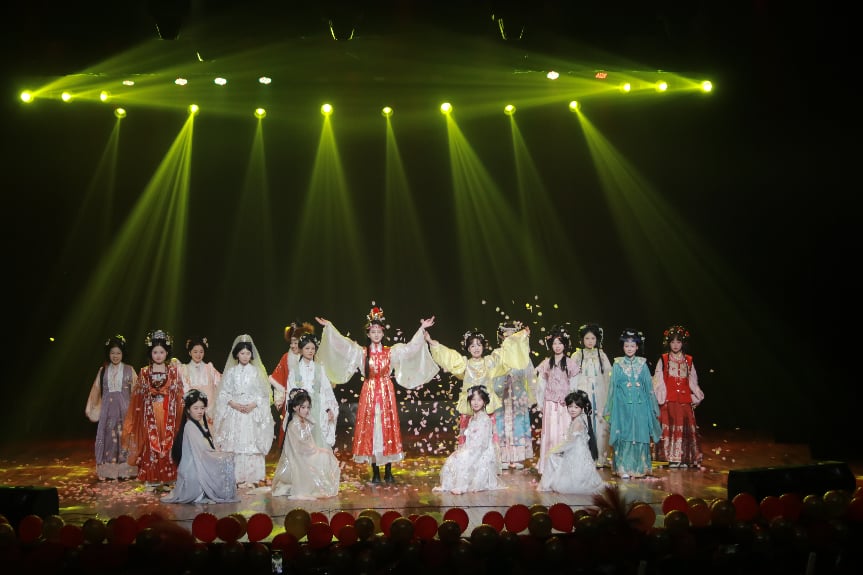 本次晚会以“友家国,我出彩”为核心主题,分设“锦绣山河,赤子之心”“新声骋怀,志启新程”“烟火人间,共赴新元”三大篇章,将传统文化底蕴与现代艺术形式巧妙融合。乐器合奏奏响晚会序曲,情景剧《破晓》以深情演绎唤醒家国情怀,民族舞《天山与雪域》用灵动舞姿展现民族风情,《致敬经典:古典时装秀,共美裳红楼》则让文学经典在舞台上焕新绽放;合唱《领航》的坚定、小品《SOS大状师》的诙谐幽默与朗诵《青衿志,沃土心》的铿锵有力更是为现场观众带来视听盛宴,将晚会氛围推向高潮。