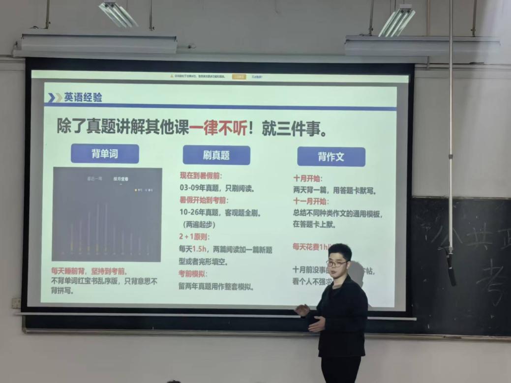 此次考研经验交流会的举办,充分发挥了优秀学子的榜样引领作用,搭建了考研经验交流与分享的优质平台,不仅帮助我院学子理清考研备考思路、树立备考信心,更体现了学院对学生升学发展的高度重视。未来,学院将持续关注学生成长需求,开展更多针对性的学业指导活动,助力学子明确发展方向、提升综合能力,实现学业与升学目标。