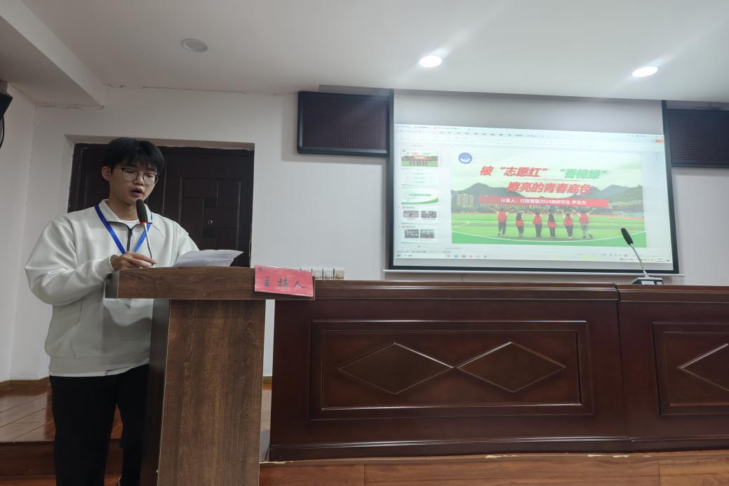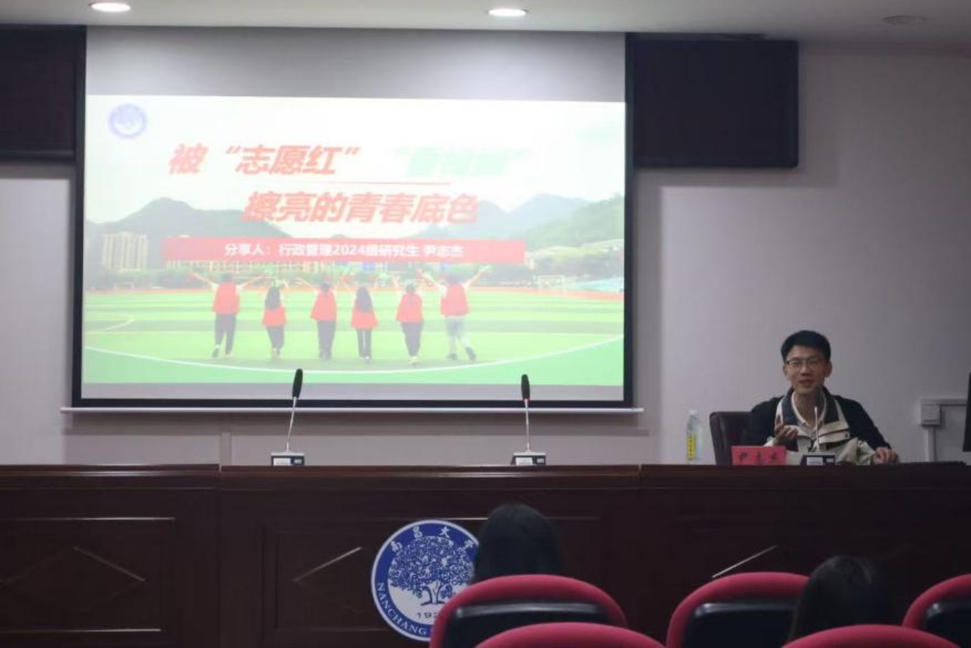 志愿服务是涵养家国情怀、锤炼青年担当的重要基石。为弘扬“奉献、友爱、互助、进步”的志愿精神,响应新时代对青年的殷切召唤,2025年10月30日,由南昌大学党委研究生工作部、南昌大学研究生会主办,公共政策与管理学院研究生会承办的第十六届“前湖研讲”之“南小研”微讲堂(第211期)在前湖校区文法楼A201报告厅顺利举行。南昌大学公共政策与管理学院2024级硕士研究生尹志杰以“被‘志愿红’‘香樟绿’擦亮的青春底色”为主题开展分享,公共政策与管理学院40名研究生代表到场聆听。