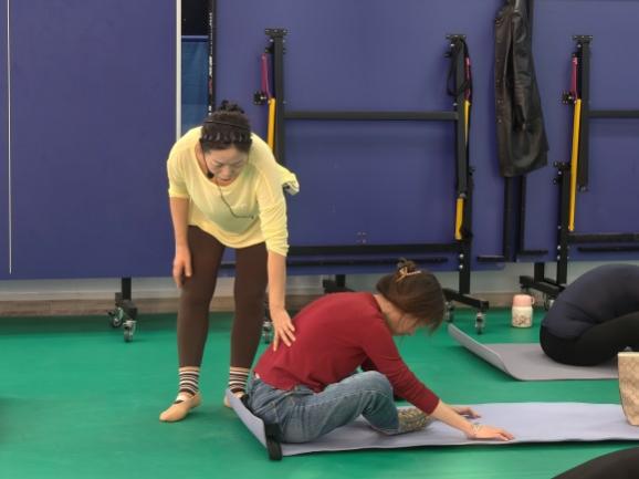在专业教练的轻柔引导与宁静音乐的伴随下,教师们逐渐进入放松状态。通过呼吸调整、体式舒展与冥想静心,大家在忙碌的教学与科研之余,体验身体与心灵的和谐对话,感受压力缓缓释放、心境渐趋平和的愉悦过程。