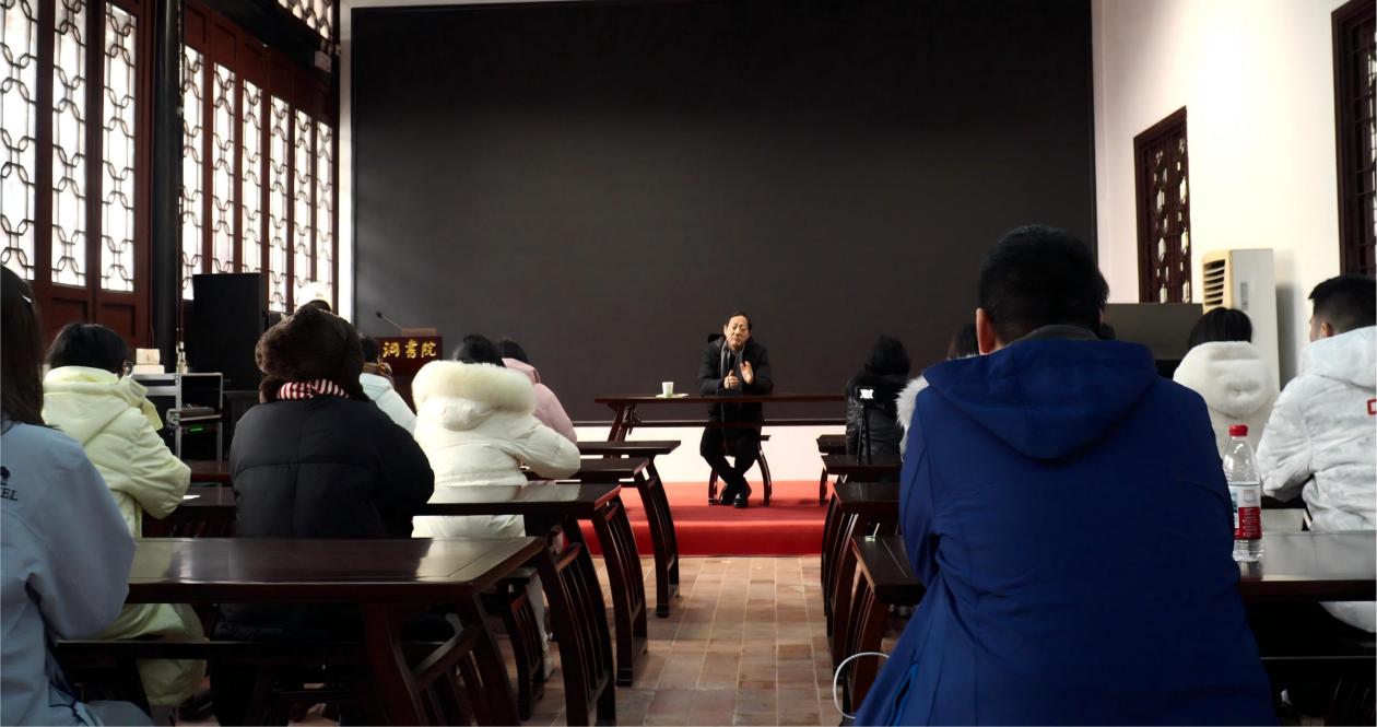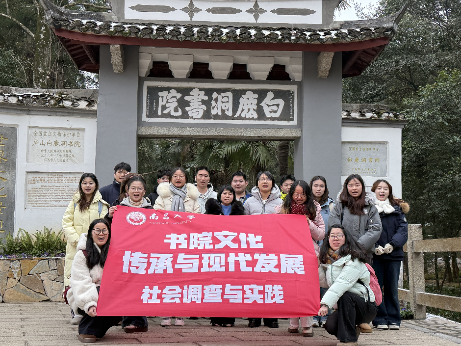 为深入贯彻落实习近平新时代中国特色社会主义思想,传承弘扬中华优秀传统文化,深化传统文化与现代教育的融合探索。2026年1月21日至1月22日,南昌大学公共政策与管理学院肖玉琴教授带队组织本科生与研究生团队赴江西庐山白鹿洞书院开展社会调研实践。原白鹿洞书院管理委员会副主任白鹿洞书院研究会秘书长郭宏达受邀为师生讲解并参与座谈为师生解锁这座“天下书院之首”的古今交融密码。
