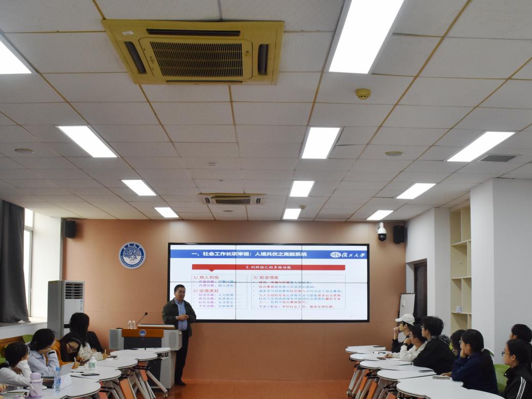 讲座尾声,顾东辉教授以“不忘本来:社工人的实践智慧”为题,寄语在场学生要“内化服务信念、恪守利他道德、提升工作能级、实现整体通融”,鼓励大家在社会工作实践中德才兼修,推动个体与社会的协同发展。