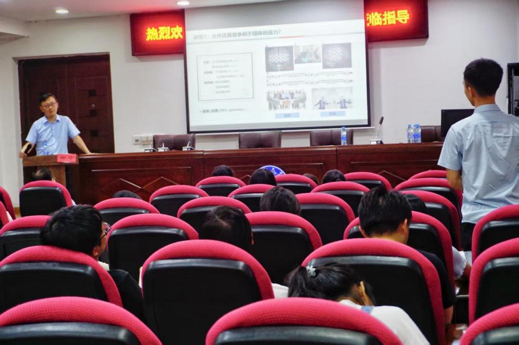 在互动答疑环节,多名师生围绕“团体人数研究局限”“成果如何应用于企业创新团队建设”等问题积极提问,郝宁教授结合实验数据与学科前沿逐一解答,为大家解决了实验和理论的相关困惑。而后,郝教授还热情介绍华东师范大学心理学专业招生信息并鼓励我校同学积极报考