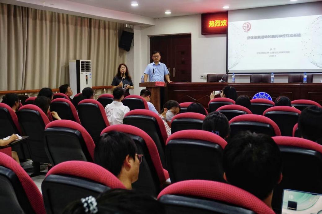 9月28日,华东师范大学心理与认知科学学院郝宁教授在文法楼A201会议室作题为“团体创新活动的脑间神经互动基础”的心理学专题讲座。公共政策与管理学院登科副院长、心理学系主任李力,以及60余名心理学系教师硕学生到场聆听,现场学术氛围浓厚师生共同探索团体创新背后的脑科学机制。