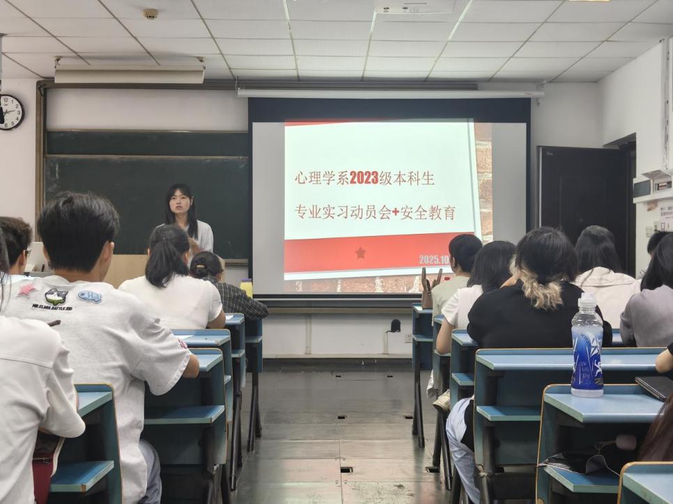 为扎实推进应用心理学专业实习工作,引导学生明确实习目标、做好实习准备,20251014日下午1400,心理学系在文法楼A129教室召开了2023级本科生专业实习动员大会。会议由心理学系副主任刘欢老师主持,辅导员程宇芳老师、实习带队教师以及2023级全体本科生参加了本次会议。