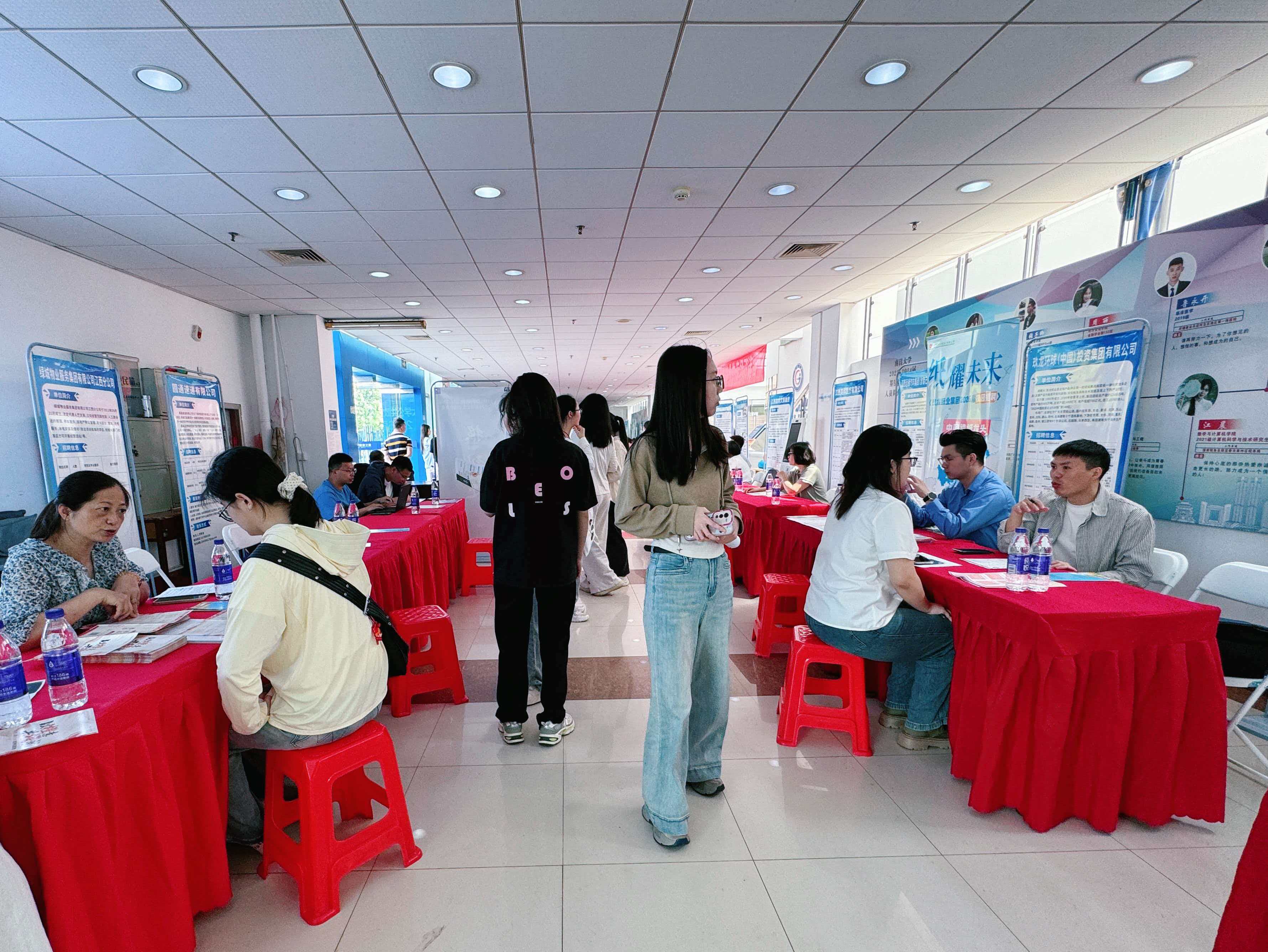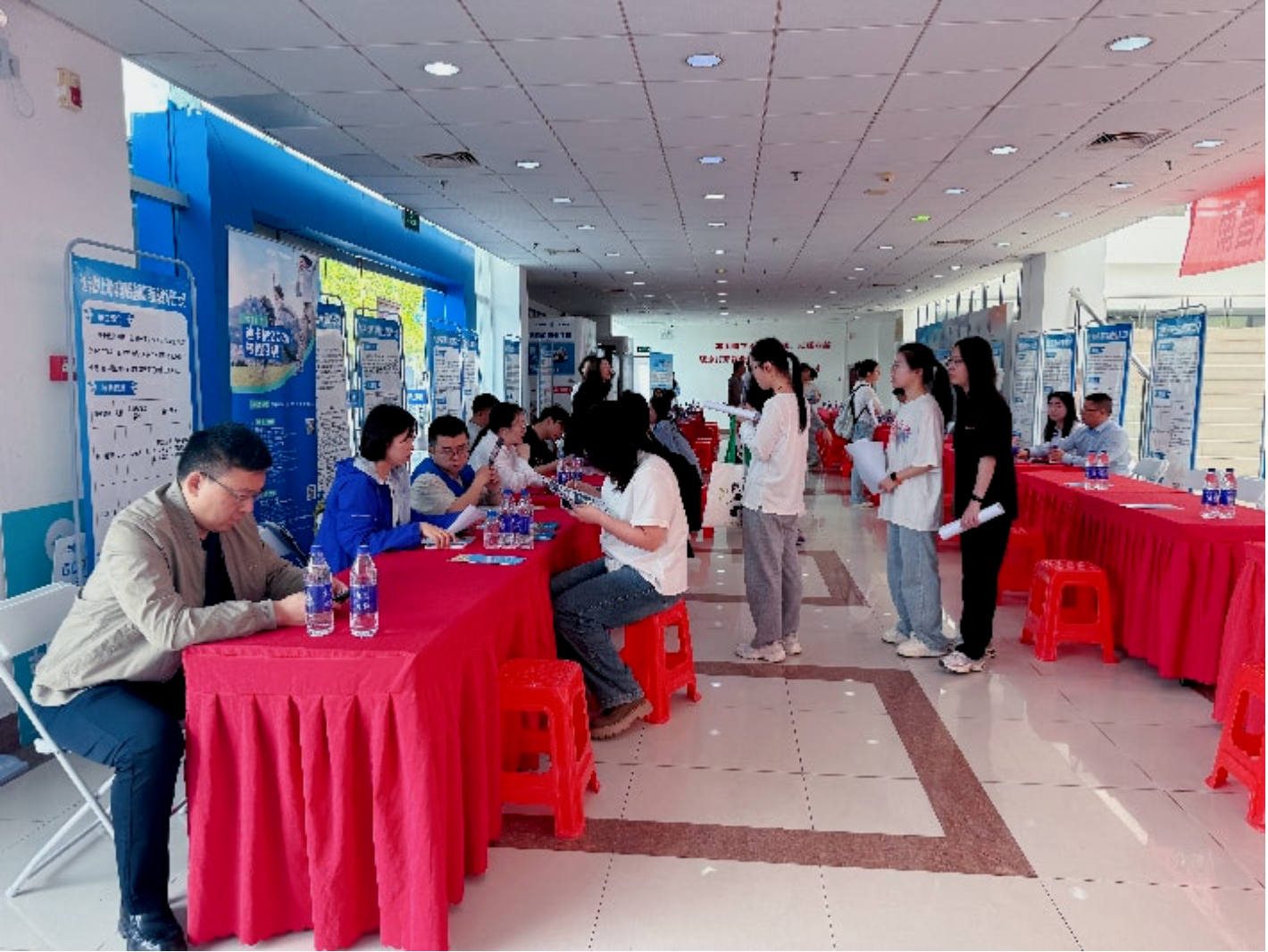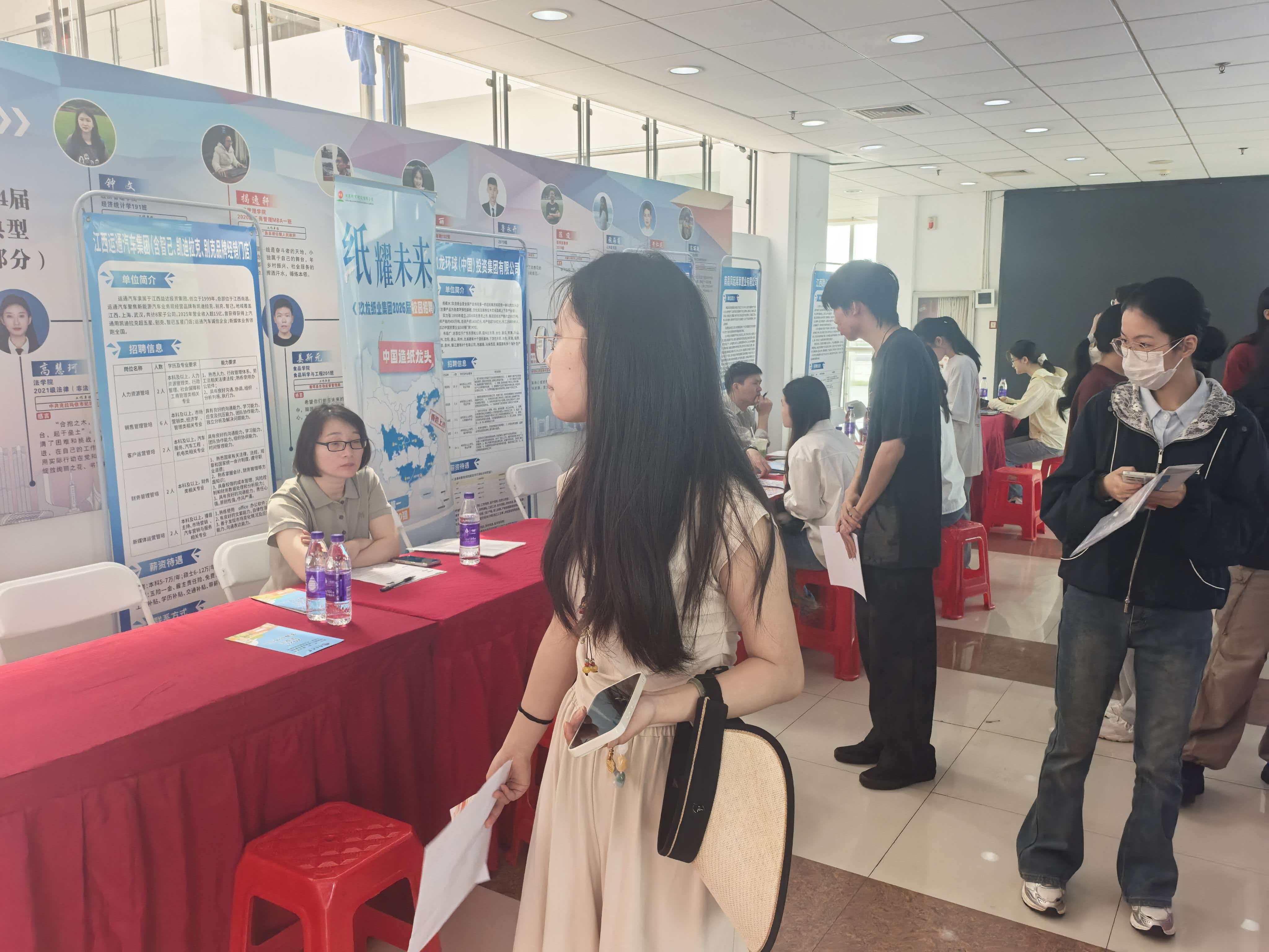 扎实推进毕业生就业服务工作,搭建校企供需对接平台,助力毕业生实现高质量就业,2026年4月20日上午,南昌大学公共政策与管理学院、法学院、旅游学院2026届毕业生专场双选会在前湖校区游泳馆一楼大厅成功举办。本次活动共吸引42家优质企业参会,面向三院毕业生释放123个就业岗位,覆盖公共管理、法律、文旅、金融、等多个领域,为同学们提供了多元的职业发展选择。