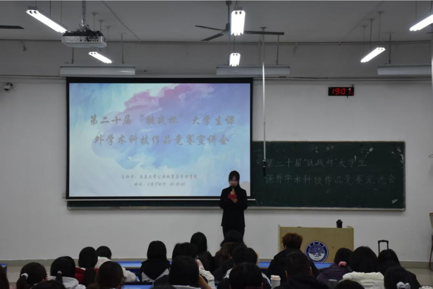 11月18日晚,南昌大学公共政策与管理学院第二十届“挑战杯”大学生课外学术科技作品竞赛宣讲会在外经楼101成功举办。本次活动旨在激发同学们的参情,加深对“挑战杯”赛事的认知,为备赛工作奠定坚实基础。