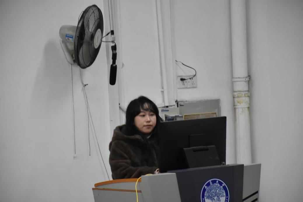 随后,杨源回顾了亲自走访多地进行实地调研的经历,强调了第一手资料对于提升作品真实性与说服力的关键作用。接着,她又详细讲解PPT制作的精髓,其中包括答辩稿的打磨技巧使同学们对备赛的各个环节有了更直观深刻的理解。